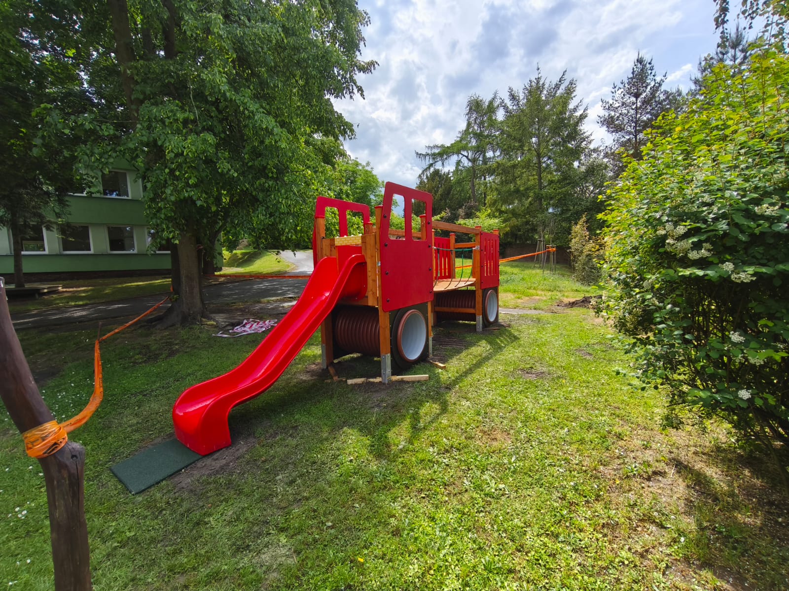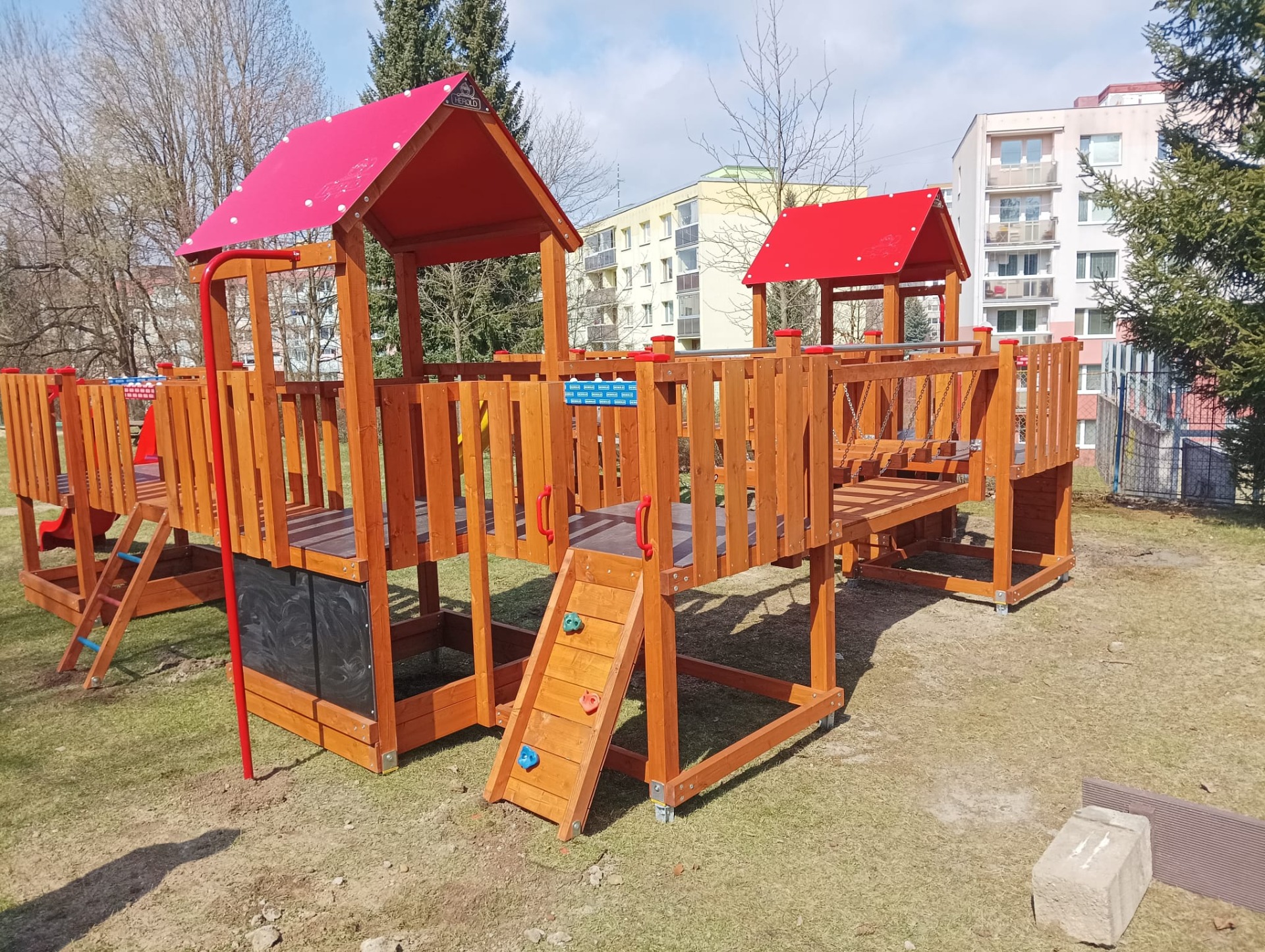 V dubnu letošního roku jsme dodávali hřiště menšího rozsahu včetně mobiliáře.
