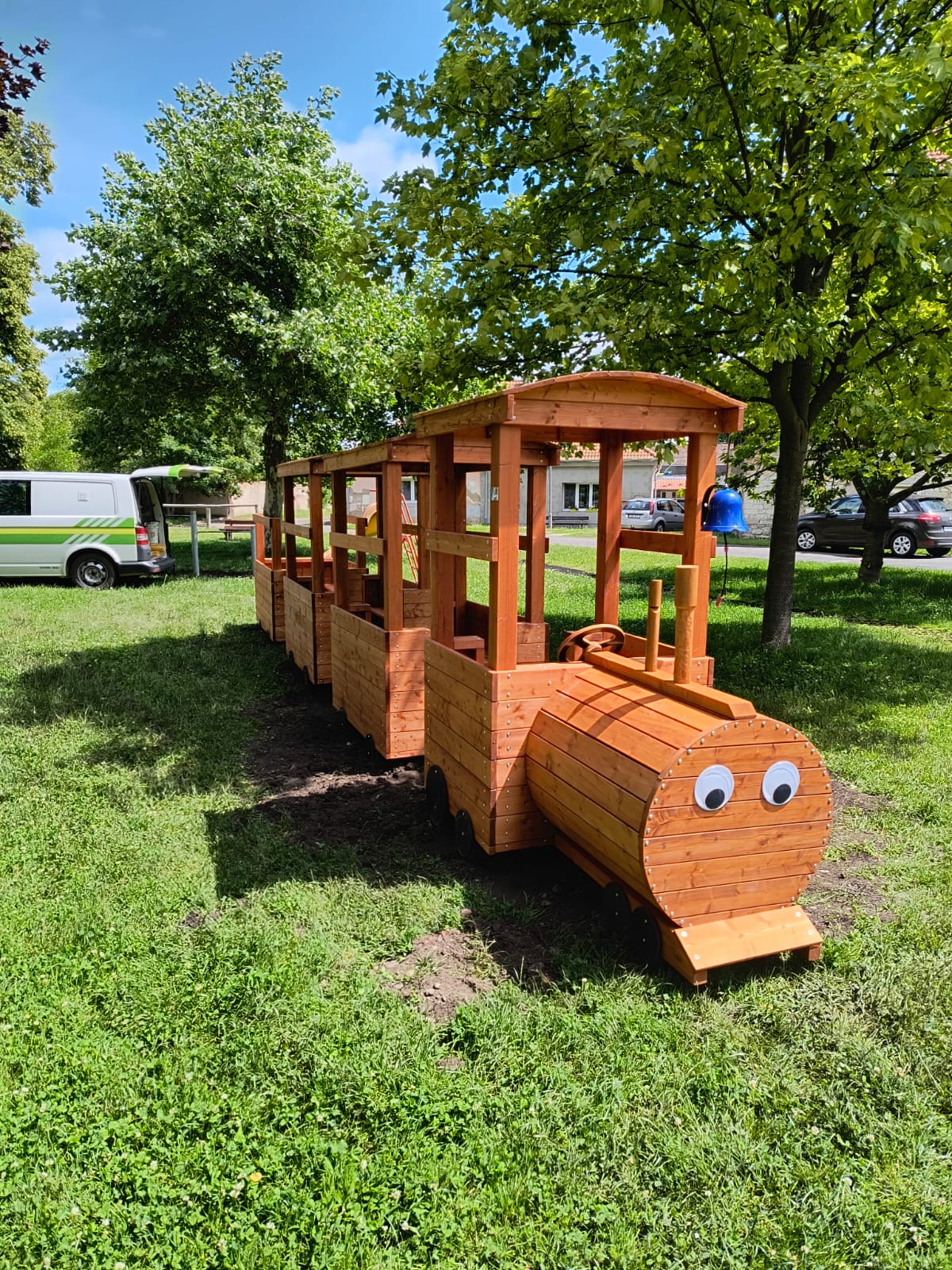 Vláček je vyroben z impegnovaného smrkového dřeva opatřený zdravotně nezávadným kvalitním nátěrem.